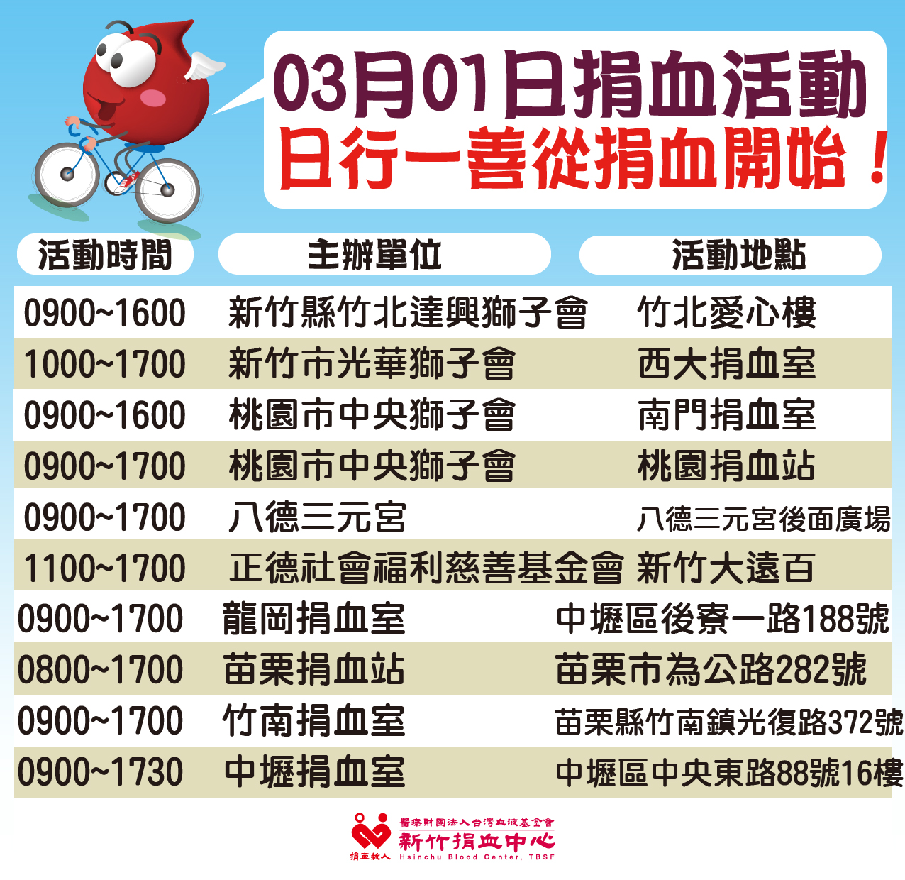 3/1(日)財團法人正德社會福利慈善基金會愛心捐血活動