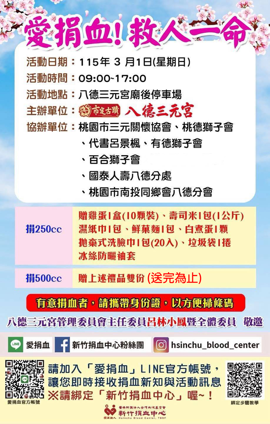 3/1(日)八德三元宮愛心捐血活動