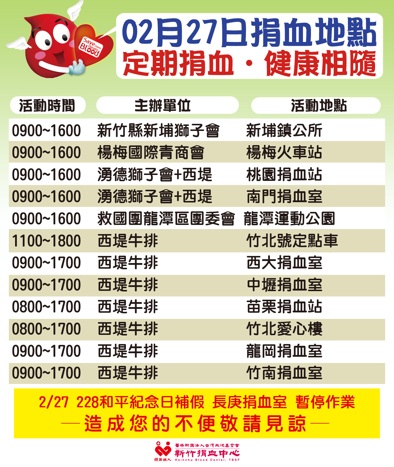 2/28(六)關西惠群獅子會愛心捐血活動