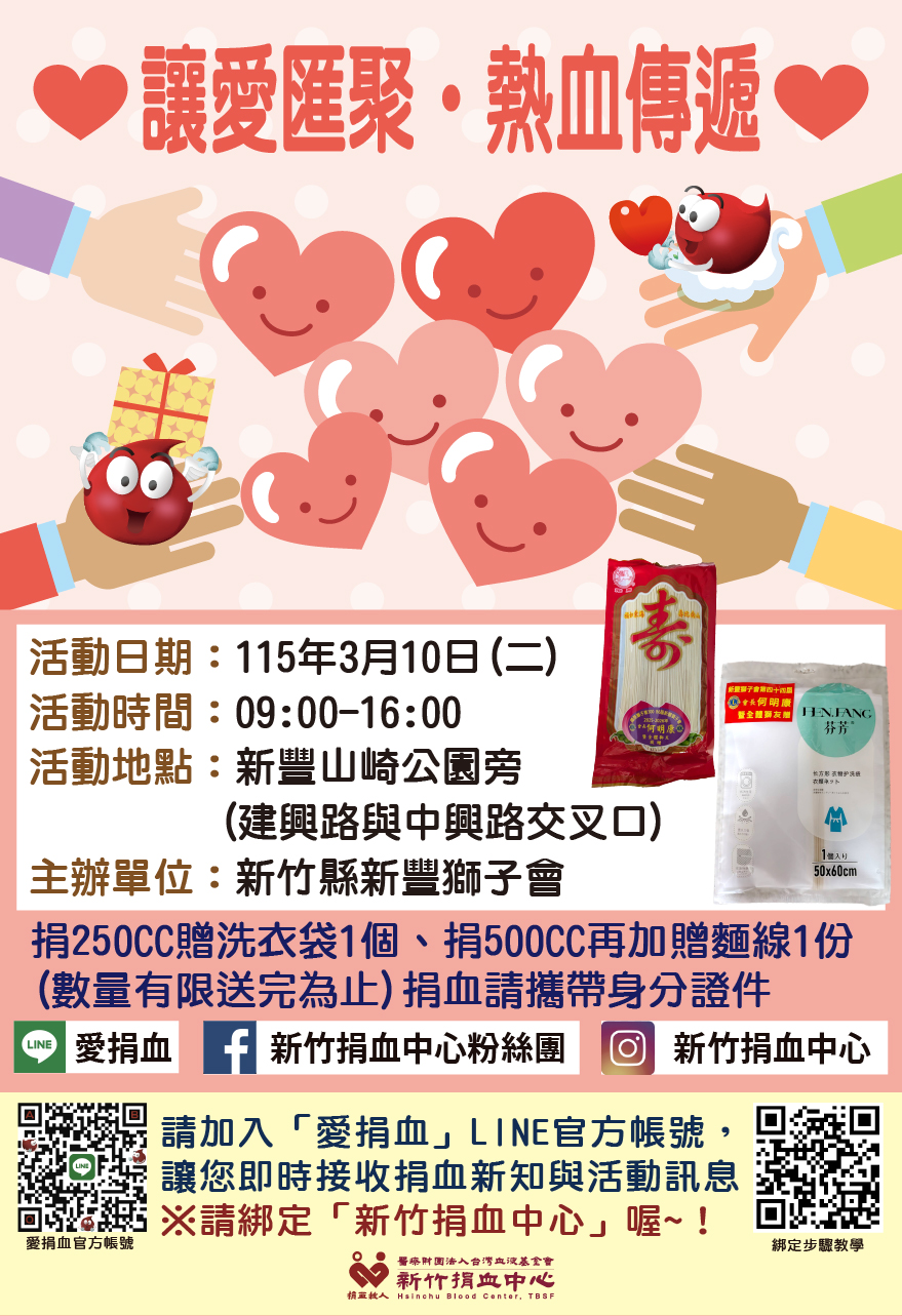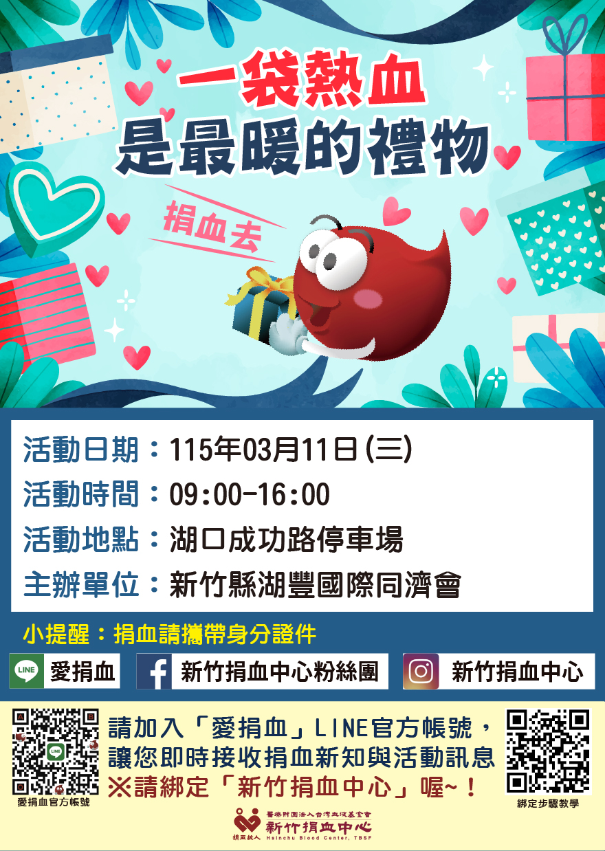 3/11(三)新竹縣湖豐國際同濟會愛心捐血活動