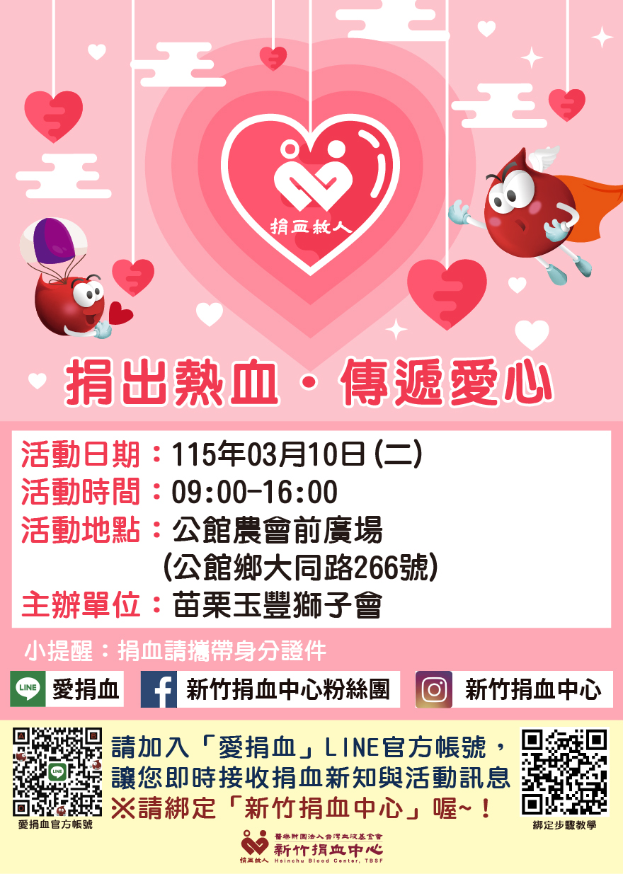 3/10(二)苗栗玉豐獅子會愛心捐血活動