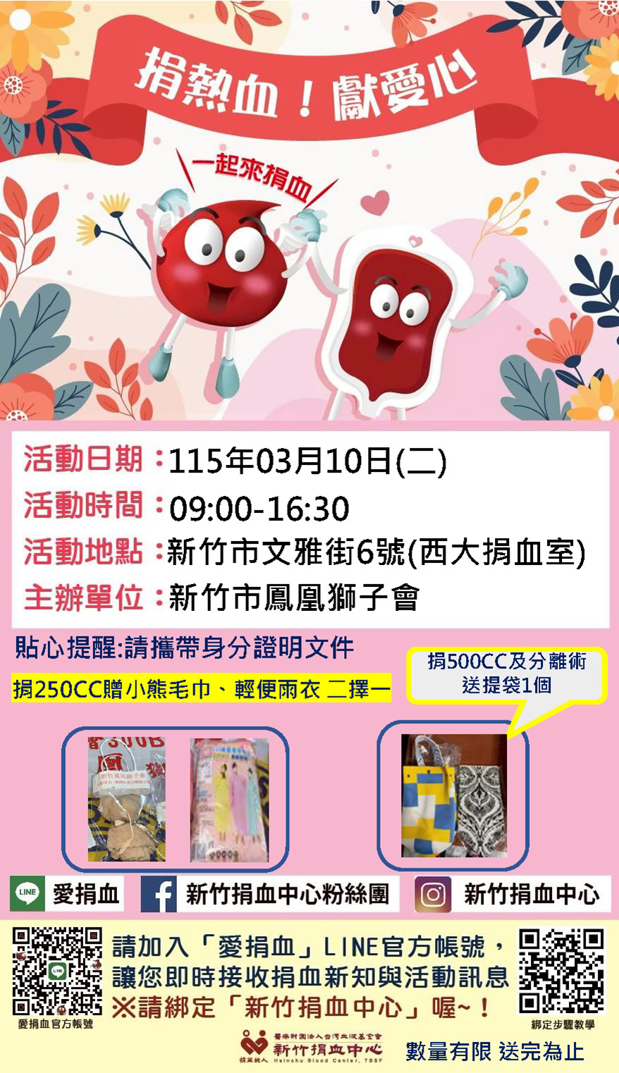 3/10(二)新竹市鳳凰獅子會愛心捐血活動