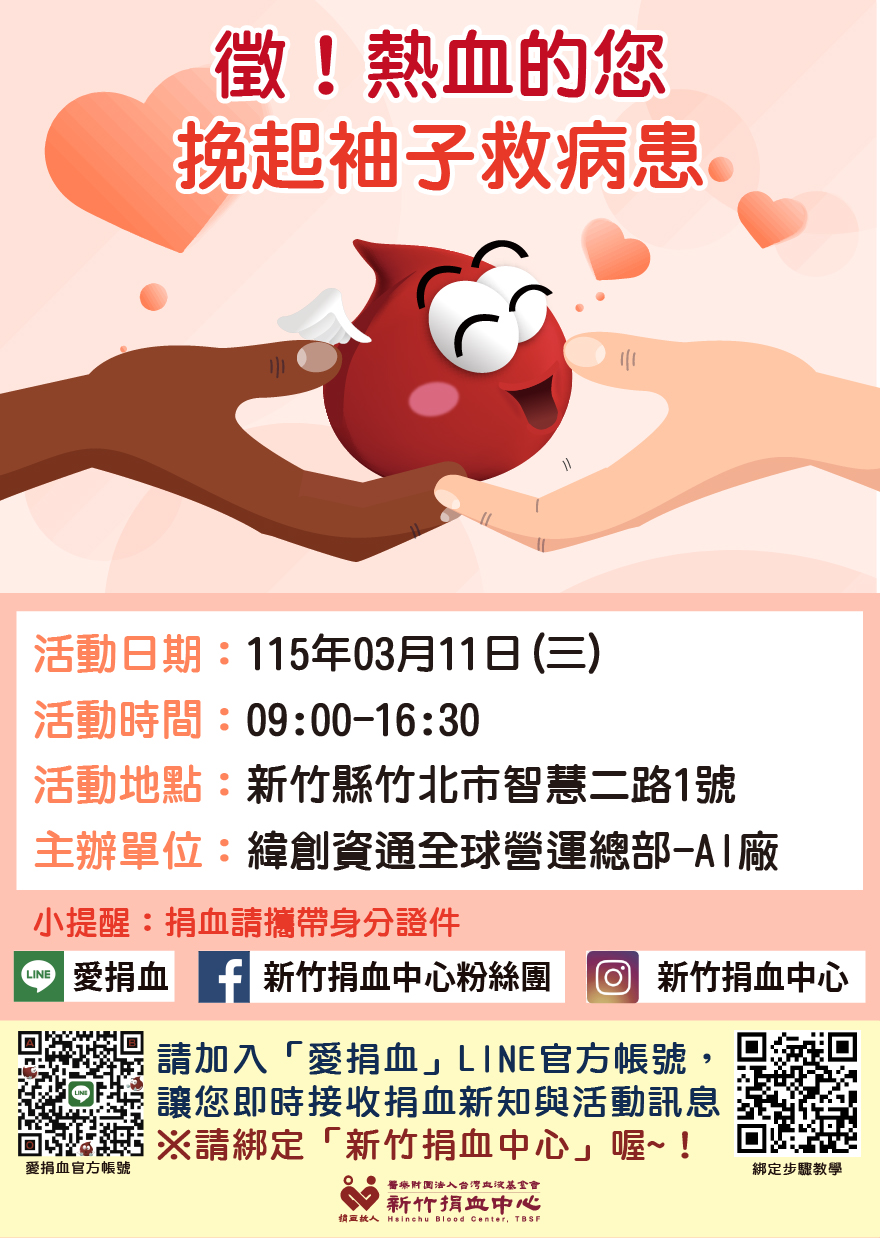 3/11(三)緯創資通全球營運總部-AI廠愛心捐血活動