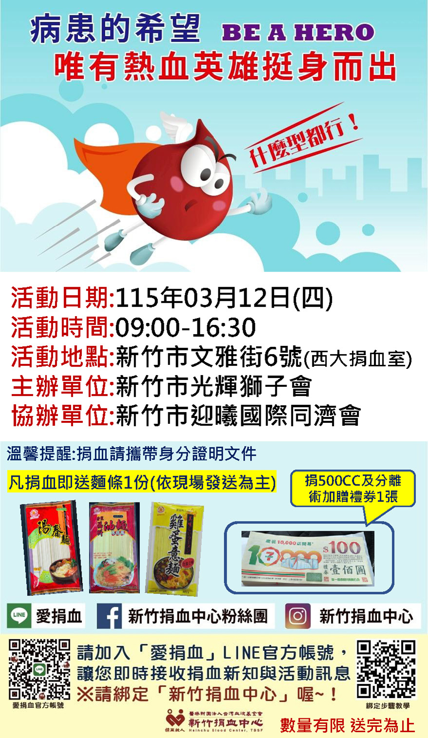 3/12(四)新竹市光輝獅子會愛心捐血活動