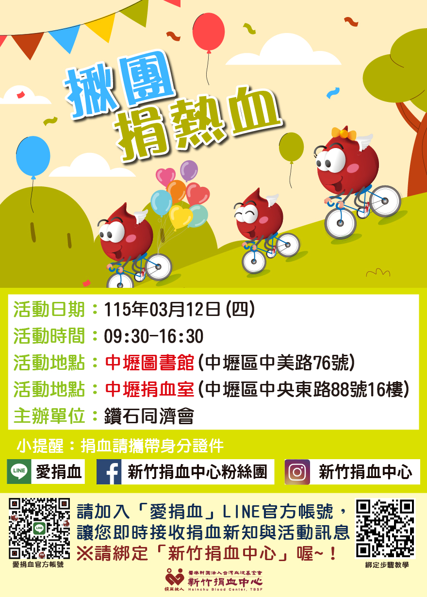 ➡活動地點:中壢區中央東路88號16樓(中壢捐血室)