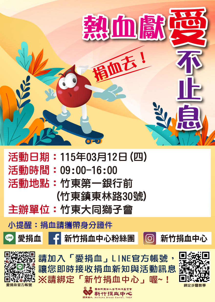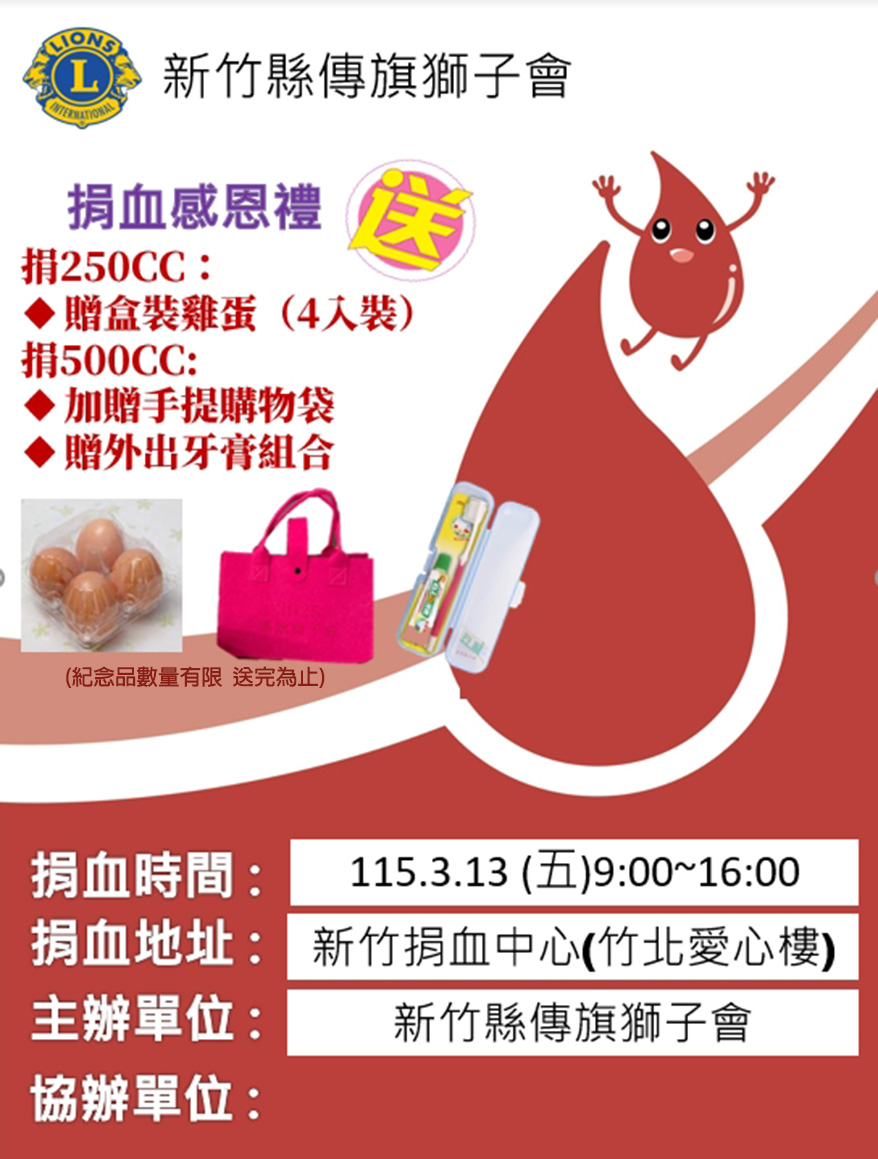 3/13(五)新竹縣傳旗獅子會愛心捐血活動