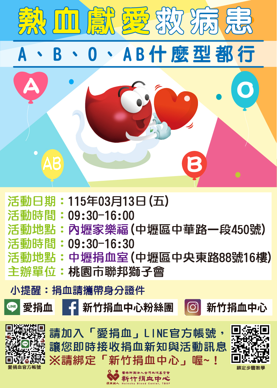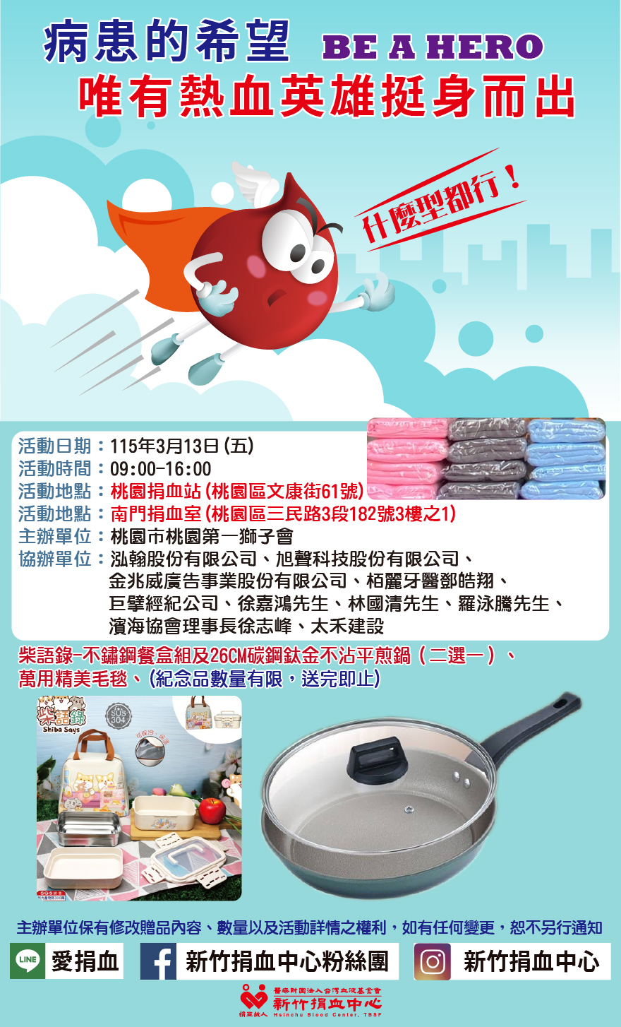 3/13(五)桃園市聯邦獅子會愛心捐血活動