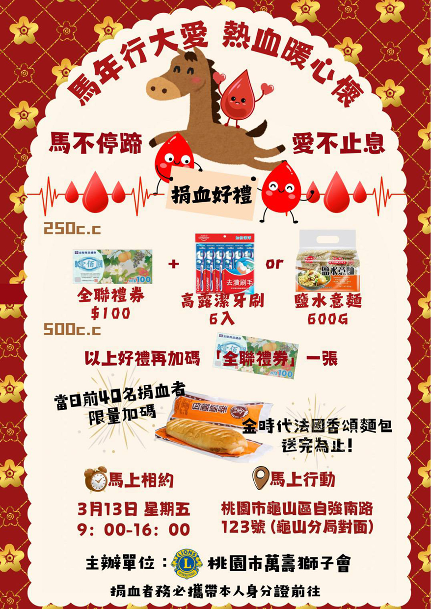 3/13(五)桃園萬壽獅子會愛心捐血活動